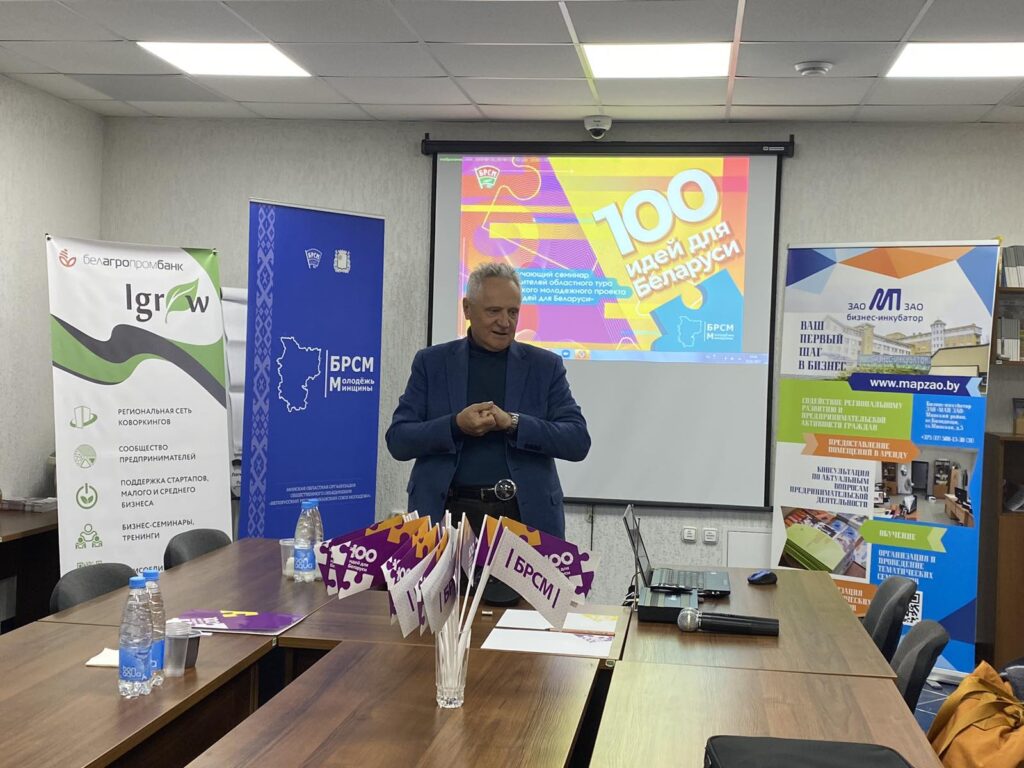 21 февраля 2023 года в конференц-зале бизнес-инкубатора ЗАО «МАП ЗАО» в Колодищах, на базе Центра притяжения «IGROW» ОАО «Белагропромбанк» состоялся обучающий семинар победителей областного этапа республиканского молодежного проекта «100 идей для Беларуси».